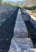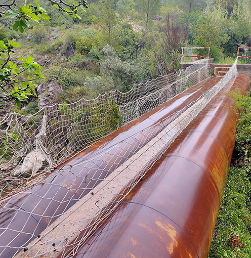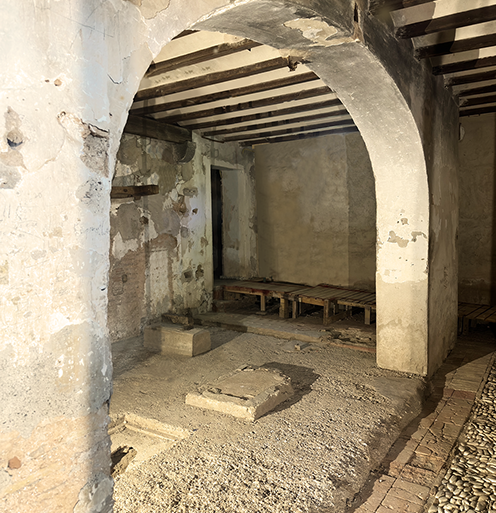 HYDRAULIC INFRASTRUCTURE This place is known as 'La Celulosa', but it was also the former Félix Durá Mill, dating from 1818: a flour mill that formed part of an industrial complex that included a hydroelectric plant, a cardboard factory, and a stone-decoration workshop. With its four millstones, it was the largest mill on the Serpis River. THE MILL stands as testimony to the historical evolution of the local industry, linked to harnessing the river's energy. Its construction embodies the hydraulic infrastructure—perfectly preserved—that powered all the industrial machinery of its time. It is a complete hydraulic harnessing system that begins upstream at the Reprimala Weir, where water from the Serpis River was diverted into a large irrigation canal over a kilometer and a half long, carrying a high flow toward two large vertical shafts or 'cubs', each more than 9 meters tall. The water flowed from the shafts into a unique vaulted chamber 3 meters high called the 'cárcara' through four narrow channels. The water pressure, regulated by a cover called the 'cerraja', drove the horizontal waterwheels (rodeznos) located in the lower chamber (cárcavo). These transferred the motion through the shaft (árbol) up to the millstones on the upper floor, where the grain was ground into flour. The mill’s hydraulic infrastructure also includes the extension added in the early 20th century to install the hydroelectric plant, featuring two turbines fed by water through two underground conduits connected to the irrigation canal.