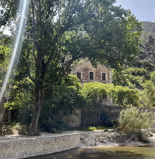 Close to the Serpis River and surrounded by mountains, THE MILL stands at the boundary between the countryside and the town of Villalonga, marking the transition between the urban and rural landscape. It is the majestic gateway to two highly valuable and scenic routes that lead into the Barranco del Infierno and connect with the Serpis Greenway. It is the landmark that marks and provides access to the stunning natural gorge between the Safor and Cuta mountain ranges, linking the towns of Lorcha and Villalonga—an area rich in history, connected to the old 'English railway' and to the hydraulic use of the river for flour production, papermaking, and electricity generation.